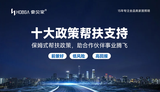 在“光环境”成为家居灵魂的今天,豪贝家照明以15年全品类家居照明深耕经验,推出“十大政策帮扶支持”体系,为创业者打造低风险、高回报的财富支点。从产品研发到终端服务,从品牌推广到团队赋能,豪贝家用一套成功的创业方法论,助您快速抢占照明升级红利。