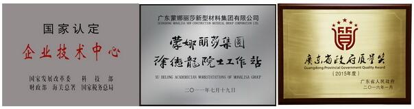 2013年,为进一步发挥企业创新优势,引领行业薄型化的良性发展,蒙娜丽莎集团积极争创国家级企业技术中心,以利用公司自有优势研发和强大竞争力,为行业“薄型化”转型发展贡献更大力量。2013年12月,蒙娜丽莎集团技术中心经国家发改委等五部委认定为“国家认定企业技术中心”,并于2014年1月正式挂牌成立,成为全球最大的建陶产业基地(佛山)唯一的陶瓷行业的国家级企业技术中心。同时,蒙娜丽莎也是中国建陶行业唯一同时拥有企业博士后科研工作站、省级院士工作站、国家认定企业技术中心三大科研技术平台的企业。